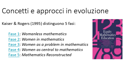 Nell’ambito del XXXVII convegno UMI-CIIM, si è svolta a Catania una tavola rotonda dedicata alle questioni di genere in educazione matematica, moderata da Roberto Natalini. Chiara Giberti (Università di Bergamo), Giulia Ferrari (Università di Torino) e Chiara de Fabritiis (Università Politecnica delle Marche) hanno dialogato portando ciascuna le proprie variegate competenze. Ferrari ha inquadrato brevemente le basi teoriche, rimarcando il fatto che il problema ha cause molteplici e di diversa natura, per illustrare poi le fasi storiche della relazione fra donne e matematica, dallo stadio di sostanziale assenza delle donne al momento attuale in cui l’equità è un concetto cruciale, per concludere riportando il punto di vista delle studiose di didattica della matematica Jo Boaler e Louise Archer. Giberti si è riagganciata a quanto detto da Ferrari, sottolineando il ruolo dei fattori socio-culturali, degli stereotipi e dei fattori metacognitivi nella molteplicità di ragioni che danno luogo al gender gap: nel primo caso ha mostrato la correlazione fra Gender Gap Index e gli esiti della rilevazione OCSE-PISA, riferendosi agli stereotipi ha citato i risultati di un esperimento in stile “Draw a Scientist” per poi raccontare i contenuti di uno studio sulla agency di 400 studentesse e studenti al primo anno della secondaria di primo grado. Dopo aver esibito alcuni dati che confermano l’uguale capacità di maschi e femmine negli studi universitari di matematica, Chiara de Fabritiis si è focalizzata sulle 4 strategie per docenti e famiglie suggerite dal progetto “Gender Gap in Science“: evitare stereotipi e pregiudizi di genere, usare libri che promuovano l’uguaglianza di genere, sviluppare la consapevolezza di genere e infine incoraggiare attività matematiche (o più in generale scientifiche) a maggioranza (o esclusivamente) femminile.