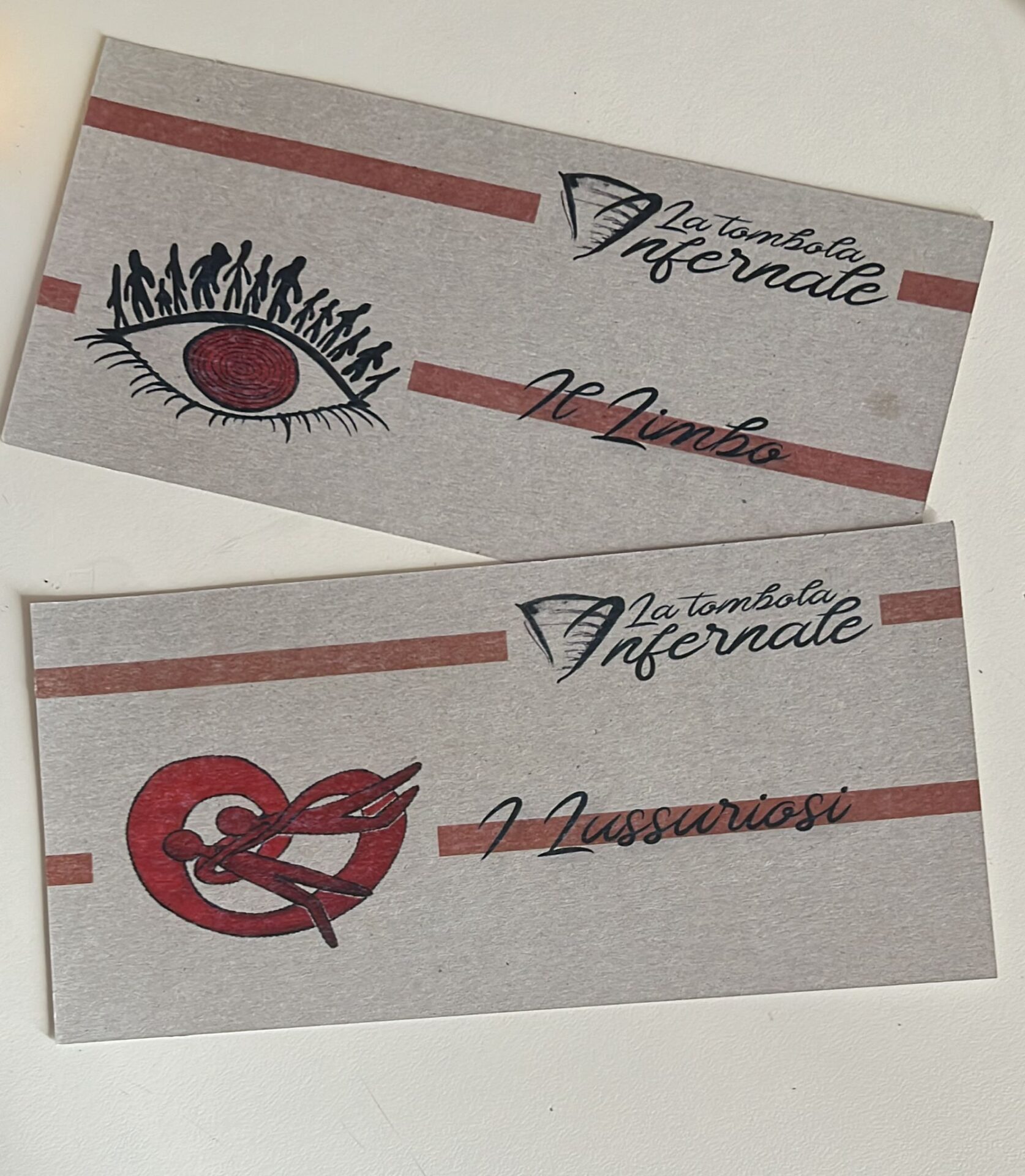 Per cominciare: cos’è la tombola Infernale? Si tratta di una tombola napoletana reinterpretata in chiave dantesca e realizzata da 15 studenti di scuola secondaria di primo e secondo grado di Napoli attraverso un percorso didattico interdisciplinare tra matematica, letteratura e disegno. Il percorso ha avuto inizio nel dicembre 2020, periodo in cui le scuole erano chiuse a Napoli ed ha rappresentato un piccolo atto di resistenza alla chiusura prolungata delle scuole in Campania attraverso un’esperienza di didattica esclusivamente in presenza, sempre in contesti di sicurezza, in luoghi aperti e chiusi della città. Nel percorso, le lezioni laboratoriali di matematica si sono alternate con quelle di italiano, durante le quali gli studenti coinvolti hanno scoperto la struttura dell’Inferno, i gironi, i peccati, le pene e le storie dei personaggi dell’Inferno di Dante. I numeri da 1 a 90 sono poi stati associati in modo opportuno a 90 personaggi dell’inferno attraverso l’aritmetica modulare (mod 34, come i 34 canti dell’inferno) in modo tale che si possa ricostruire in quale canto dell’Inferno appaia o venga citato per la prima volta il personaggio associato a quello specifico numero. E poi ancora calcolo combinatorio, geometria dei solidi, osservazione e generalizzazioni di regolarità, proprietà aritmetiche dei primi 90 numeri naturali, questi sono i contenuti matematici proposti dalle docenti di matematica Nunzia Di Maria e Paola Lattaro. Infine un ruolo fondamentale lo ha avuto il disegno, linguaggio universale con cui gli studenti e le studentesse hanno raccontato i peccati dei 9 cerchi e i protagonisti del capolavoro di Dante visti coi loro occhi di adolescenti. La tombola Infernale è anche corredata da una declinazione infernale del gioco, inventata dagli studenti che l’hanno realizzata e che la rende un vero e proprio strumento didattico da utilizzare in nuove attività educative tutte da esplorare.