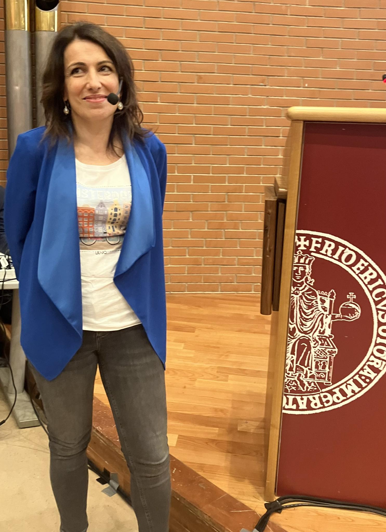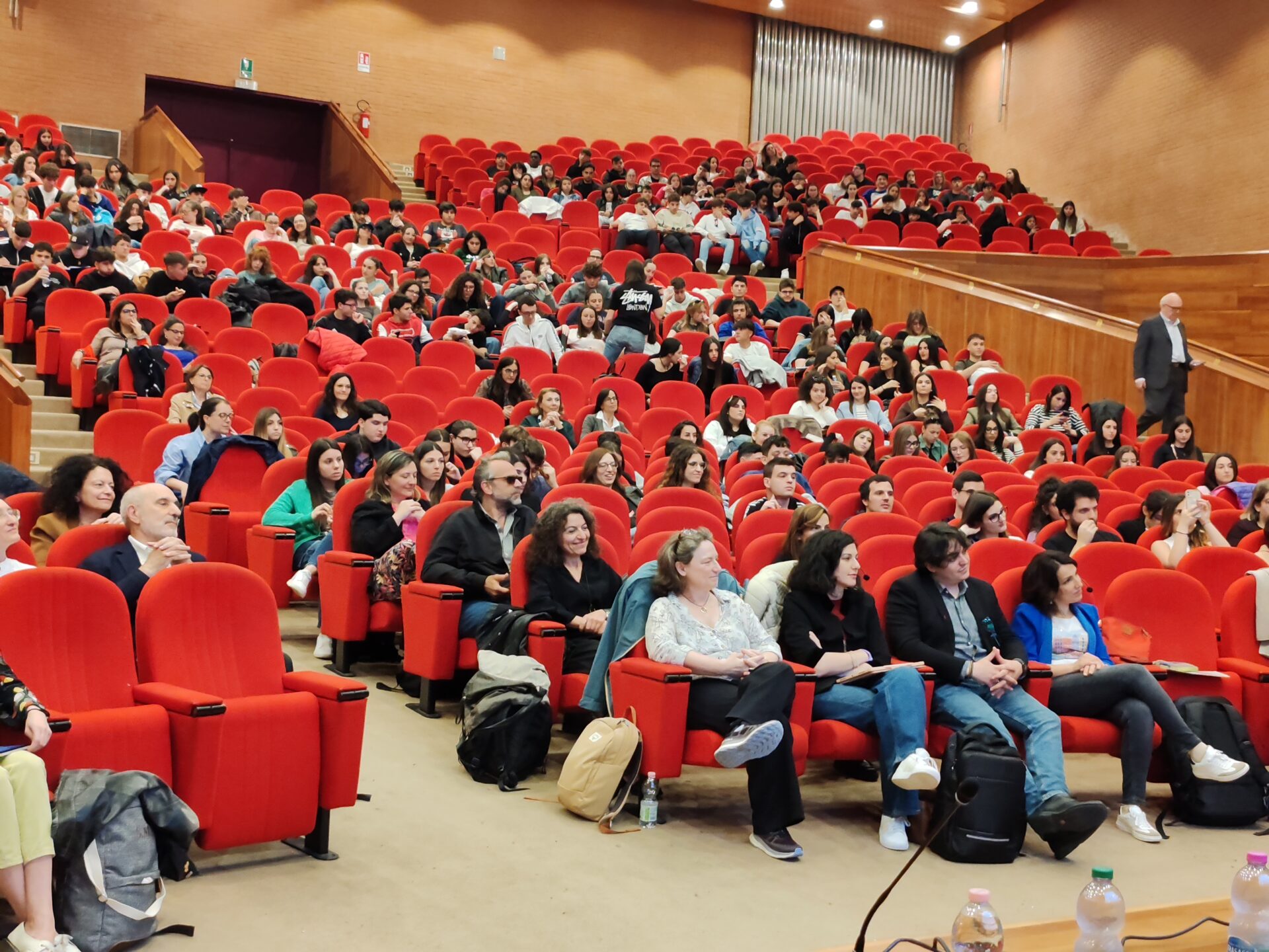 Mercoledì 8 maggio dalle 9 alle 13, l’aula Ciliberto del Complesso di Monte Sant’Angelo si è letteralmente riempita di oltre 600 ragazze e ragazzi delle scuole superiori della provincia che, accompagnati da loro docenti, hanno partecipato a una animatissima mattinata di interventi di varia natura, moderati da Martha Fabbri. Dopo i saluti istituzionali, durante i quali, tra gli altri, il presidente dell’UMI prof. Piermarco Cannarsa ha ringraziato la direttrice del Dipartimento e presidente dell’INdAM professoressa Cristina Trombetti per l’ospitalità, sul palco si sono avvicendate Paola Lattaro, Serena Cenatiempo, Donatella Iacono e Sabina Milella.