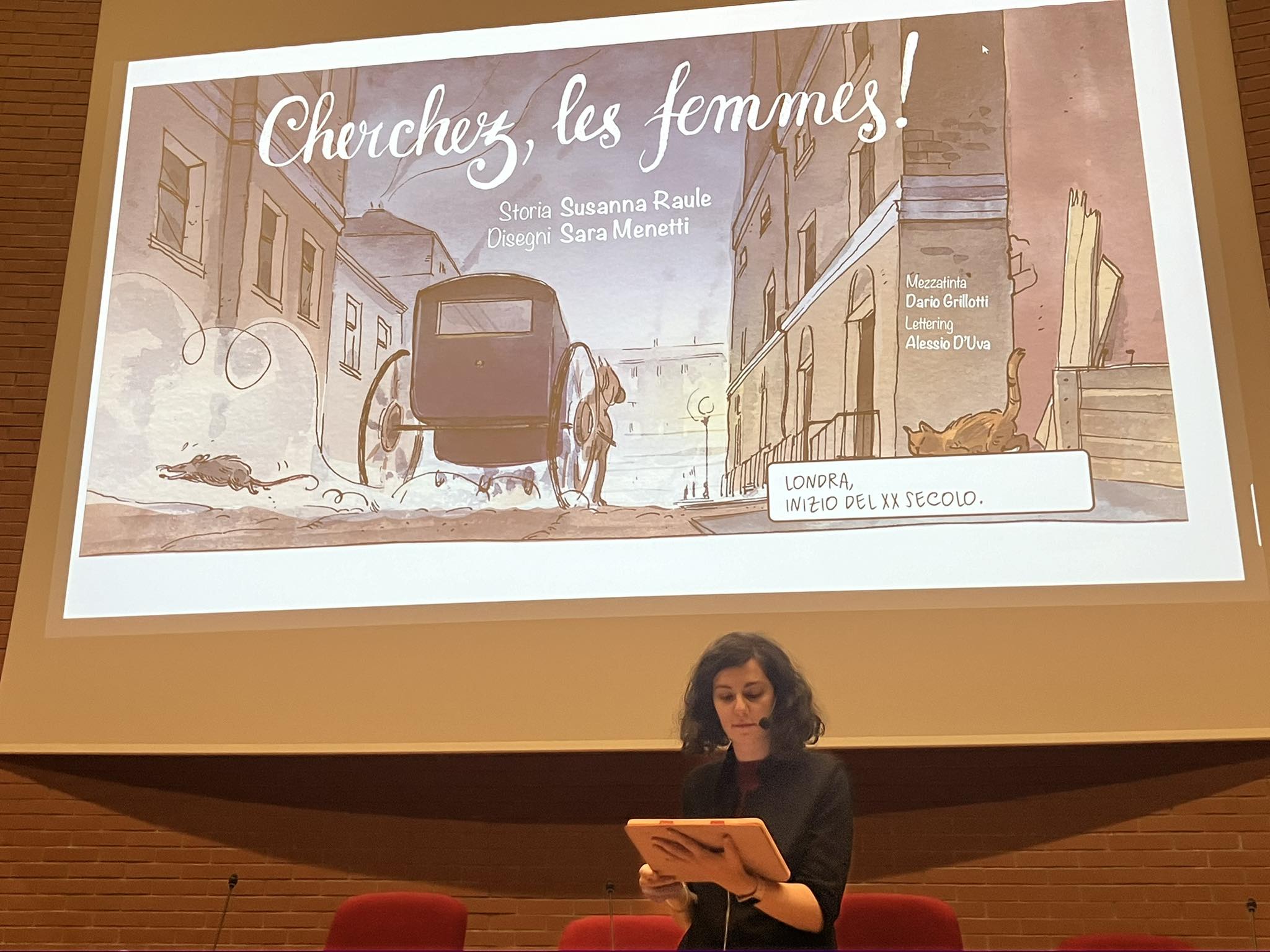 - Inizia la lettura teatrale del fumetto di Comics&Science “Cherchez, les femmes!” di Susanna Raule e Sara Menetti. Qui Rossella Rivoli