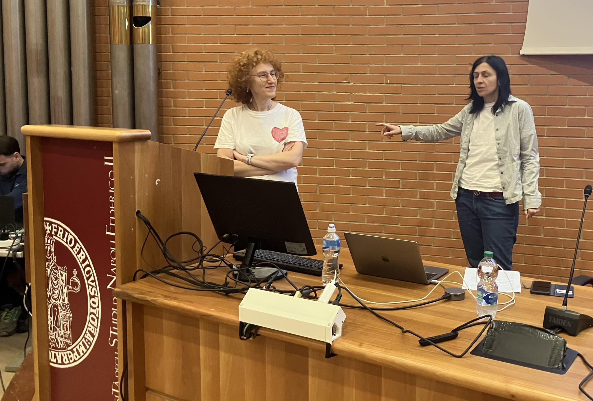 Come ormai tradizione dal 2020, l’UMI ha organizzato un evento per la Festa delle Donne Matematiche che ricorre il 12 maggio, compleanno di Maryam Mirzakhani. Questa volta la sede prescelta è stata l’Università degli Studi di Napoli Federico II, vista anche la ricorrenza degli 800 anni dalla sua fondazione ad opera del sovrano svevo. L’evento, oltre che dall’UMI, è stato organizzato dal Dipartimento di Matematica e Applicazioni “R. Caccioppoli”, con la collaborazione di MaddMaths!, del CECAM e il patrocinio dell’INdAM. Il comitato scientifico-organizzatore era composto da: Barbara Nelli, Chiara de Fabritiis, Maria Mellone, Roberto Natalini, Tiziana Pacelli, e Ulderico Dardano. [Nel seguito le gallery possono essere cliccate per far scorrere le immagini ingrandite].