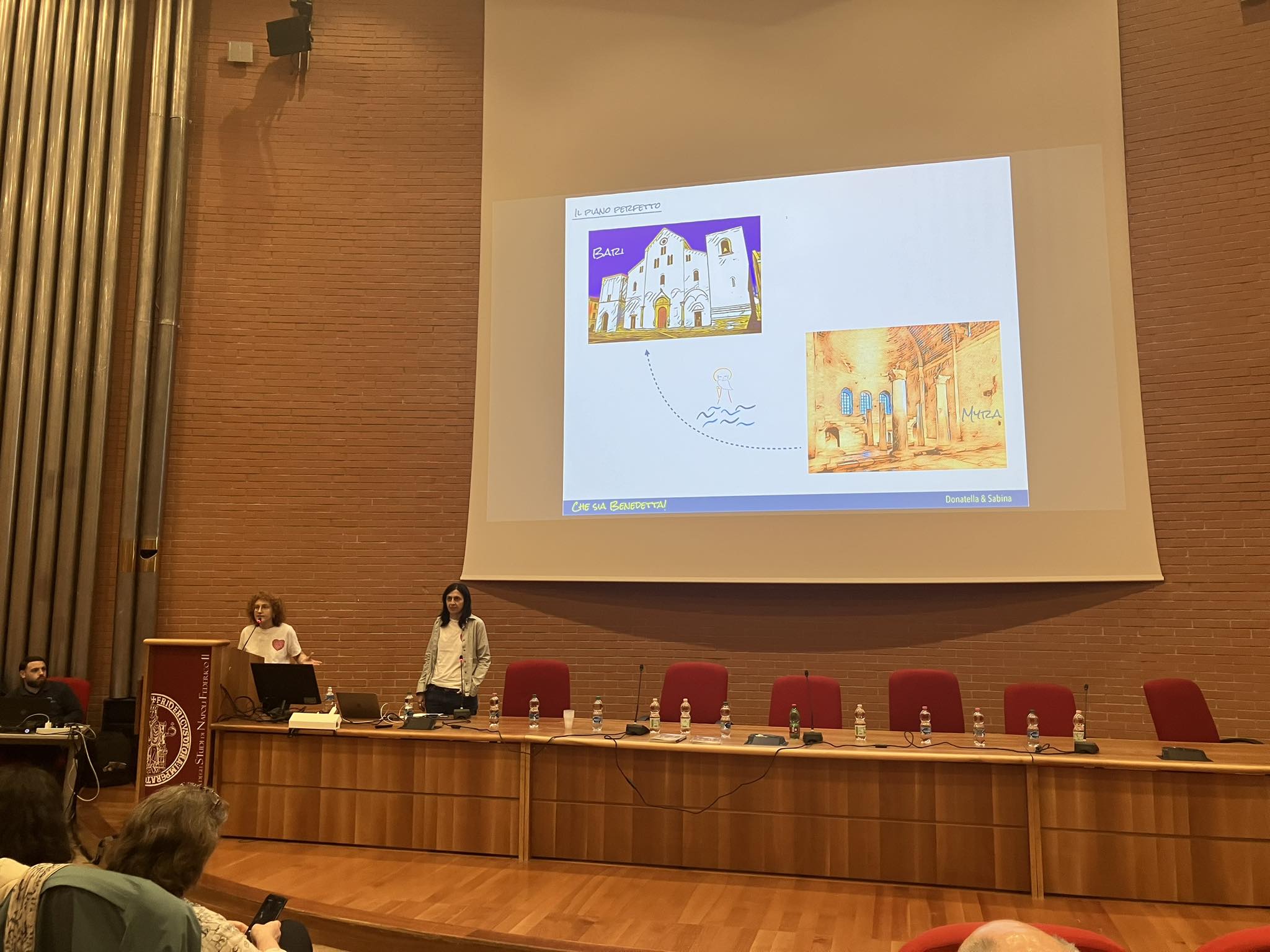 Donatella Iacono e Sabina Milella, dell’Università di Bari, hanno animato il loro intervento incentrato sul patrono del capoluogo pugliese, San Nicola, proponendo un quiz al quale i presenti dovevano rispondere utilizzando il cellulare: lo stupore per due professoresse di matematica che esortavano gli studenti e le studentesse a usare il telefonino invece di tenerlo spento ha superato ogni possibile limite.