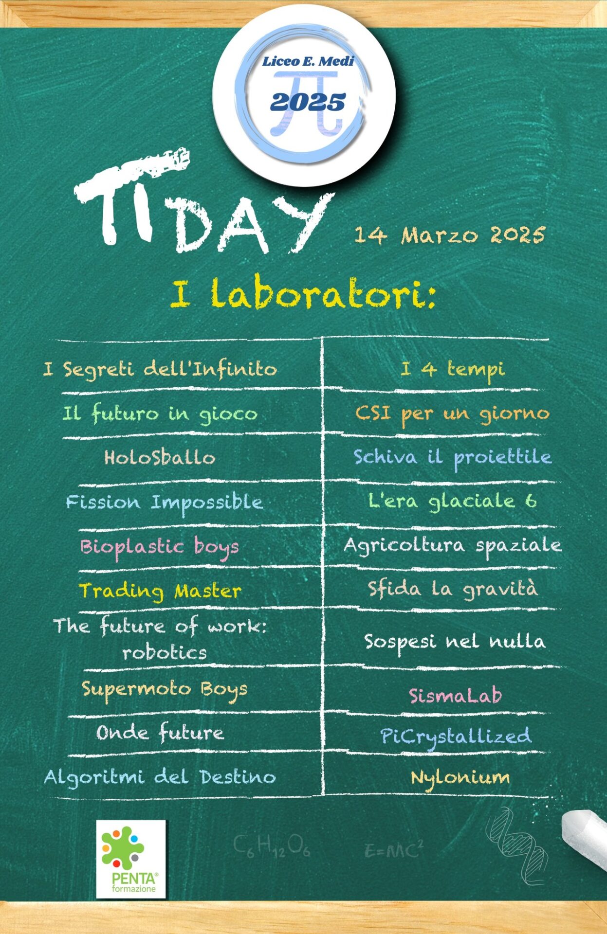 Il Pi Greco Day è un’occasione imperdibile per scoprire il lato divertente e affascinante della matematica, della fisica e della chimica. Vi aspettiamo per una giornata di scoperte, divertimento e condivisione.