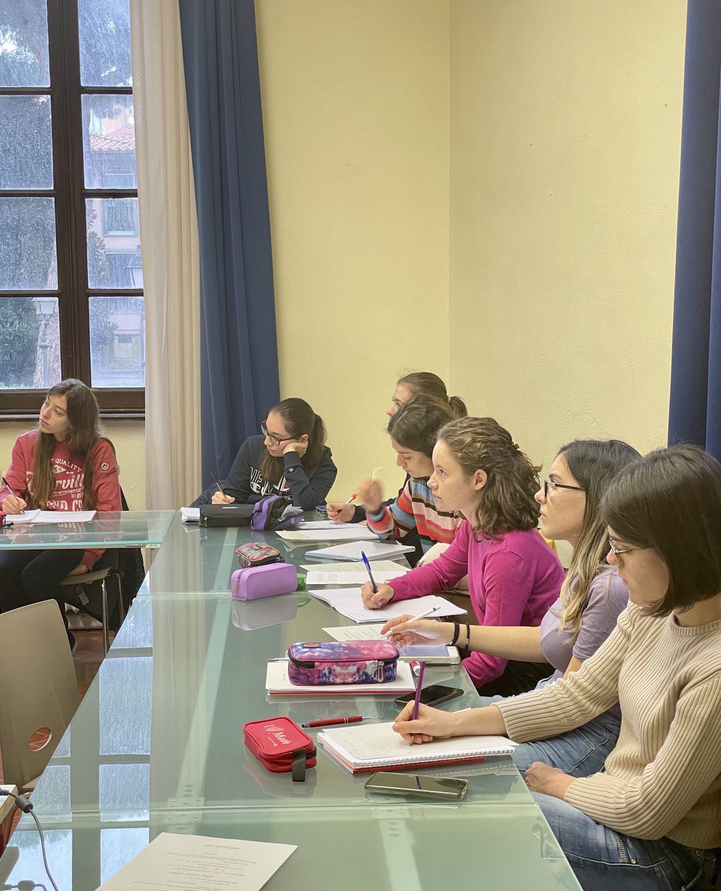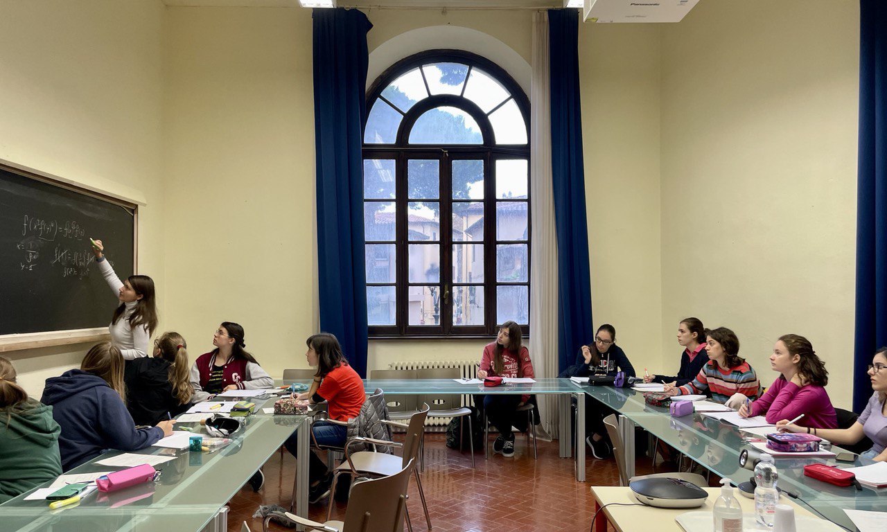 Per far sì che l’Italia partecipi al meglio, ma anche per ampliare a livello nazionale l’impatto di queste iniziative, viene organizzato dal 2019 uno stage italiano di preparazione tutto al femminile, l’EGMO Camp. Una delle idee fondanti lo accomuna alla gara a squadre femminile: provare a formare una comunità italiana di ragazze appassionate di matematica, dando loro un evento e un obiettivo comune attorno al quale raccogliersi. Inoltre, il duplice scopo di avvicinare tante ragazze nuove al mondo delle olimpiadi da una parte e di selezionare una squadra che rappresenti il nostro Paese a una competizione internazionale dall’altra, genera una disomogeneità di livello tra le partecipanti, proficua per la trasmissione di conoscenze ed esperienze dalle veterane alle novizie. Il passaggio di testimone non si limita poi solo alle concorrenti: le lezioni vengono tenute in maggioranza da studenti e studentesse universitari, volontari molto appassionati provenienti dal mondo delle olimpiadi, di cui circa la metà sono proprio ex-EGMOiste o ex-stagiste (tra loro contiamo le autrici di questo articolo).